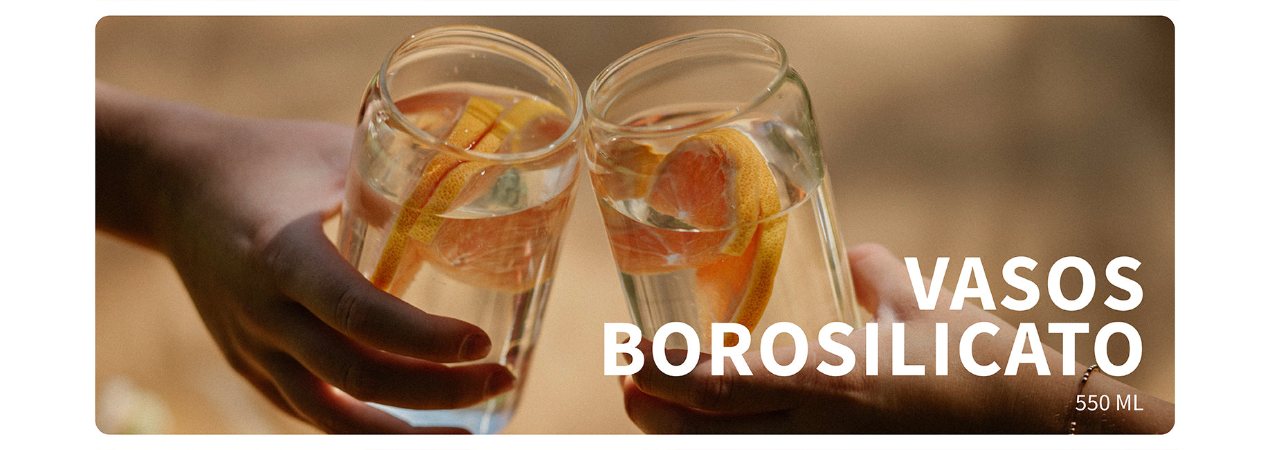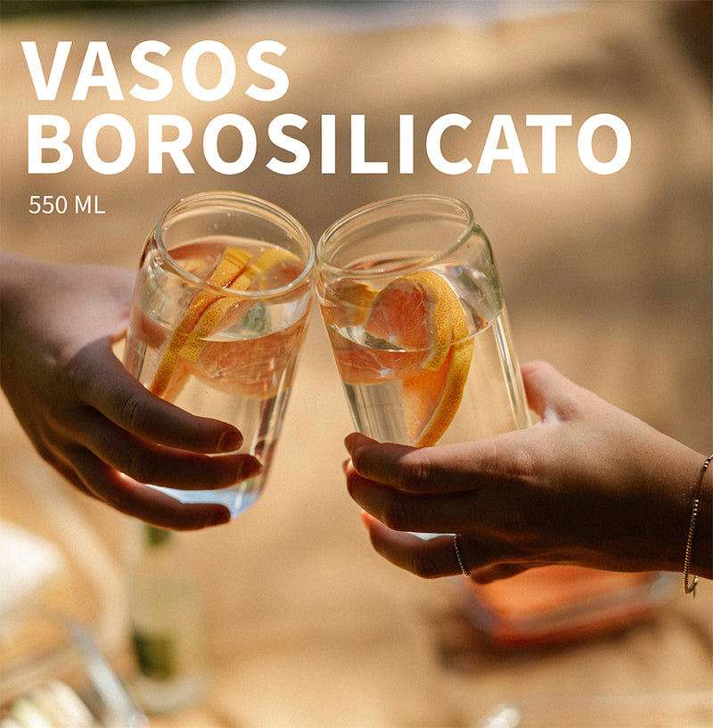 Hechos de vidrio borosilicato que los hace más resistentes y aptos para bebidas frías y calientes.