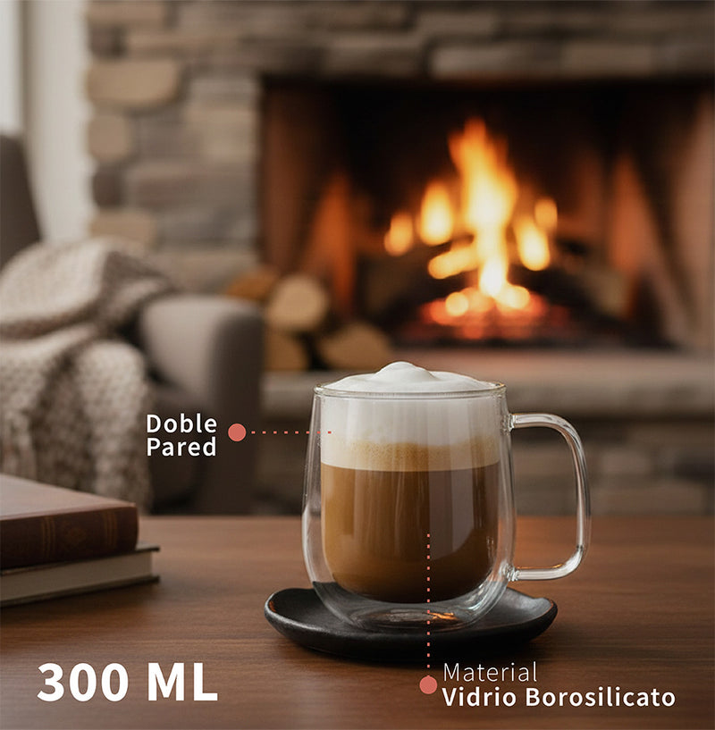 Taza Mug de Vidrio Doble Pared 300 ml Simplit