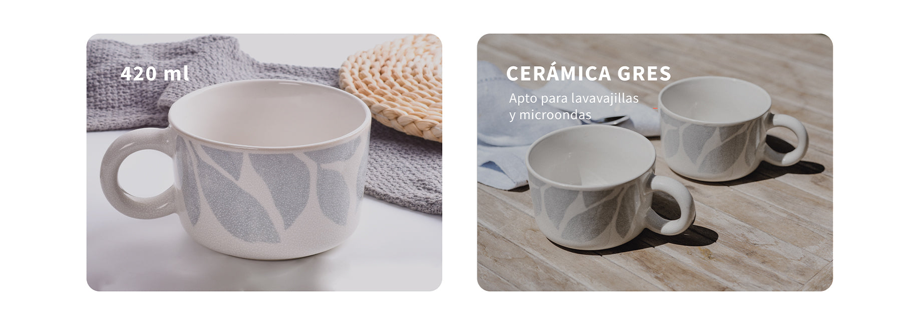 • Material cerámico: Duradero y de alta calidad, apto para lavavajillas y microondas.
