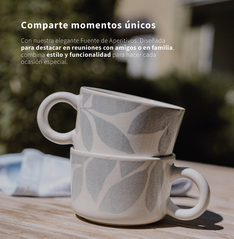 Convierte cada pausa en un momento especial con estas elegantes tazas decoradas con delicados detalles de hojas. Perfectas para disfrutar de tu café, té o infusiones favoritas.