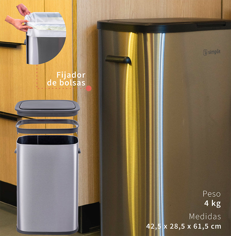 Basurero Cocina Handy 55lts Táctil Acero Inox Simplit