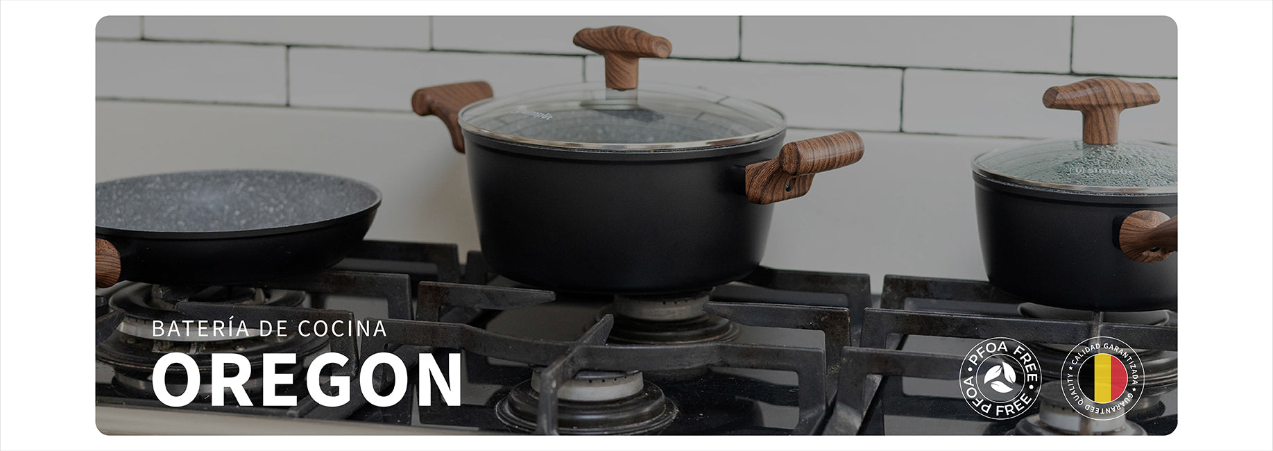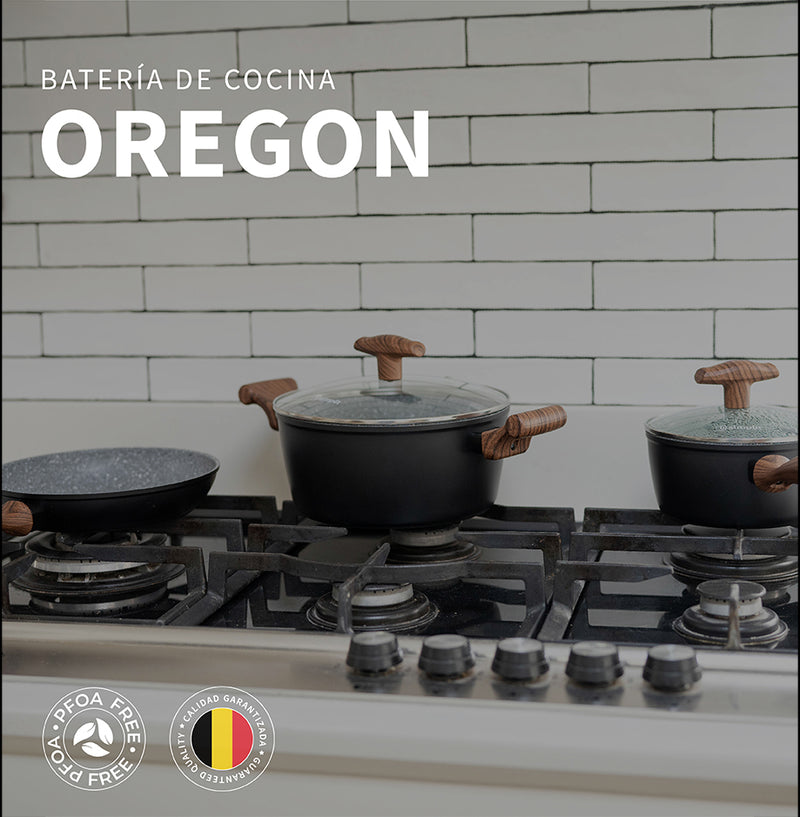 ¡Prepárate para una experiencia culinaria excepcional con la nueva Batería de ollas 5 piezas antiadherente Oregon de Simplit! Este conjunto de cocina no es solo una colección de utensilios, sino un compañero que te inspirará a explorar tu pasión por la cocina de una manera emocionante.