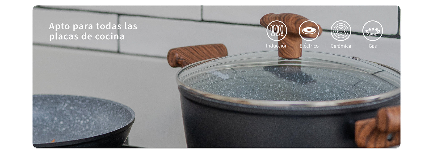 • Bases: Aptas para todas las placas de cocina (Inducción, Gas, Eléctricas o Vitrocerámica)