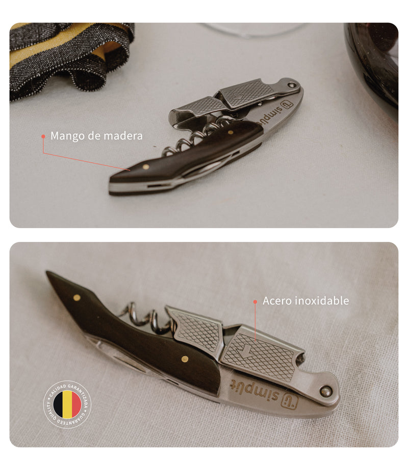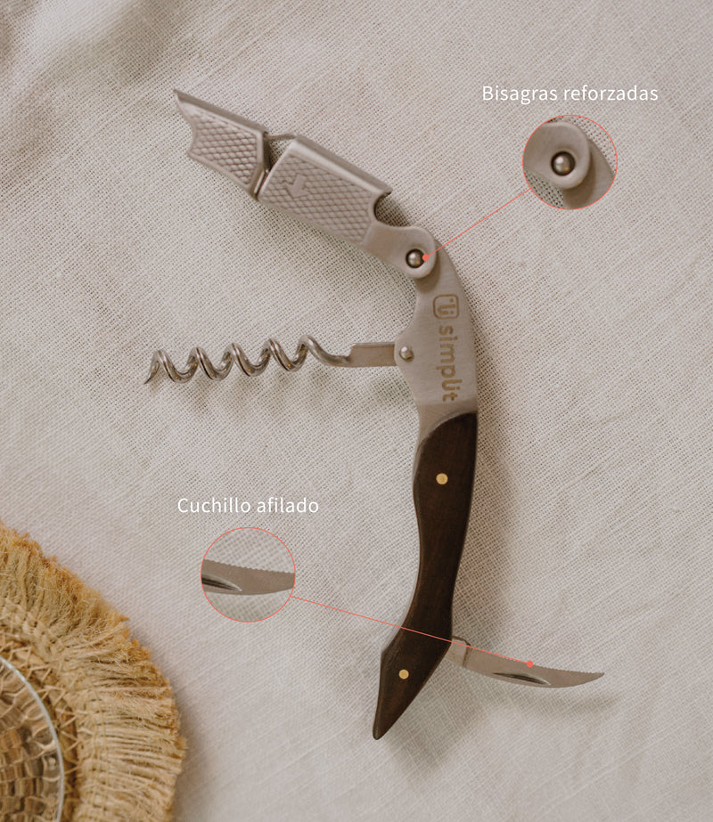 Descubre el sacacorcho ideal para tu cocina con el descorchador sommelier de Simplit. Elegante, funcional y de alta calidad, este accesorio combina diseño estético con practicidad para abrir tus botellas de vino de manera rápida y segura. Perfecto para amantes del vino que buscan renovar su cocina con accesorios modernos y duraderos. ¡Haz de cada momento especial una experiencia perfecta!