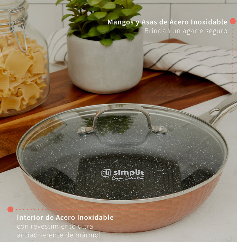 Set 2 Sarténes Cobre Antiadherente 28cm Tapa + 24cm Simplit