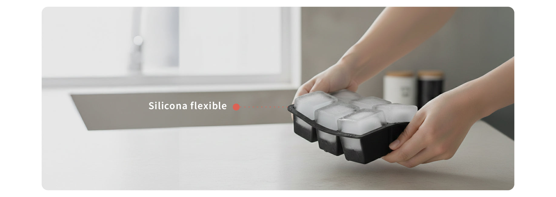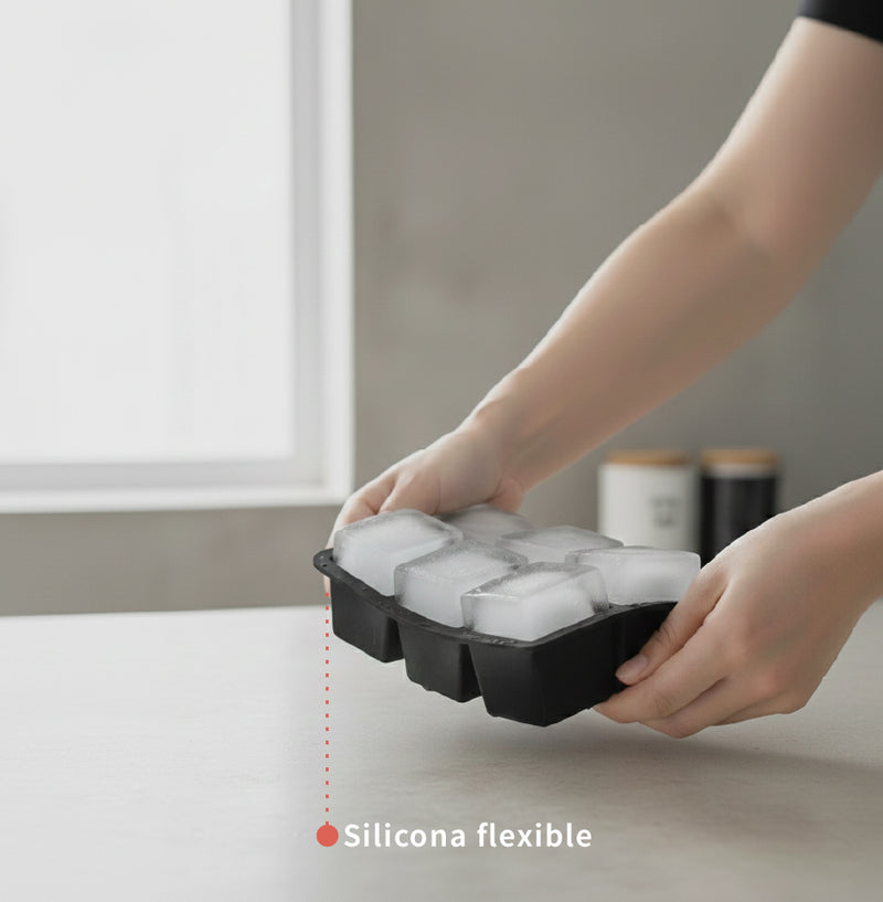 Cubetera de silicona para 6 hielos grandes para tus bebidas. Al ser grandes, tienen una mayor duración. Gracias al diseño de silicona flexible sacar los hielos no va a ser un problema. No absorbe olores ni sabores del congelador