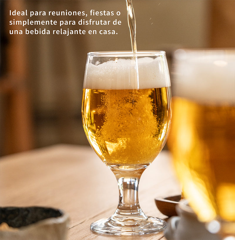 El Set 6 Vaso Cervecero Collins es un conjunto de seis vasos elegantes y versátiles diseñados especialmente para disfrutar de cervezas y cócteles. Cada vaso tiene una capacidad de 420 ml, lo que los convierte en la elección perfecta para servir bebidas refrescantes y espumosas. Con un diseño clásico de copa de tallo alto y forma alargada, estos vasos ofrecen una presentación sofisticada y permiten apreciar el color y las burbujas de las bebidas. Fabricados con vidrio de alta calidad, son duraderos y fáciles de limpiar. Ideal para reuniones, fiestas o simplemente para disfrutar de una bebida relajante en casa.
